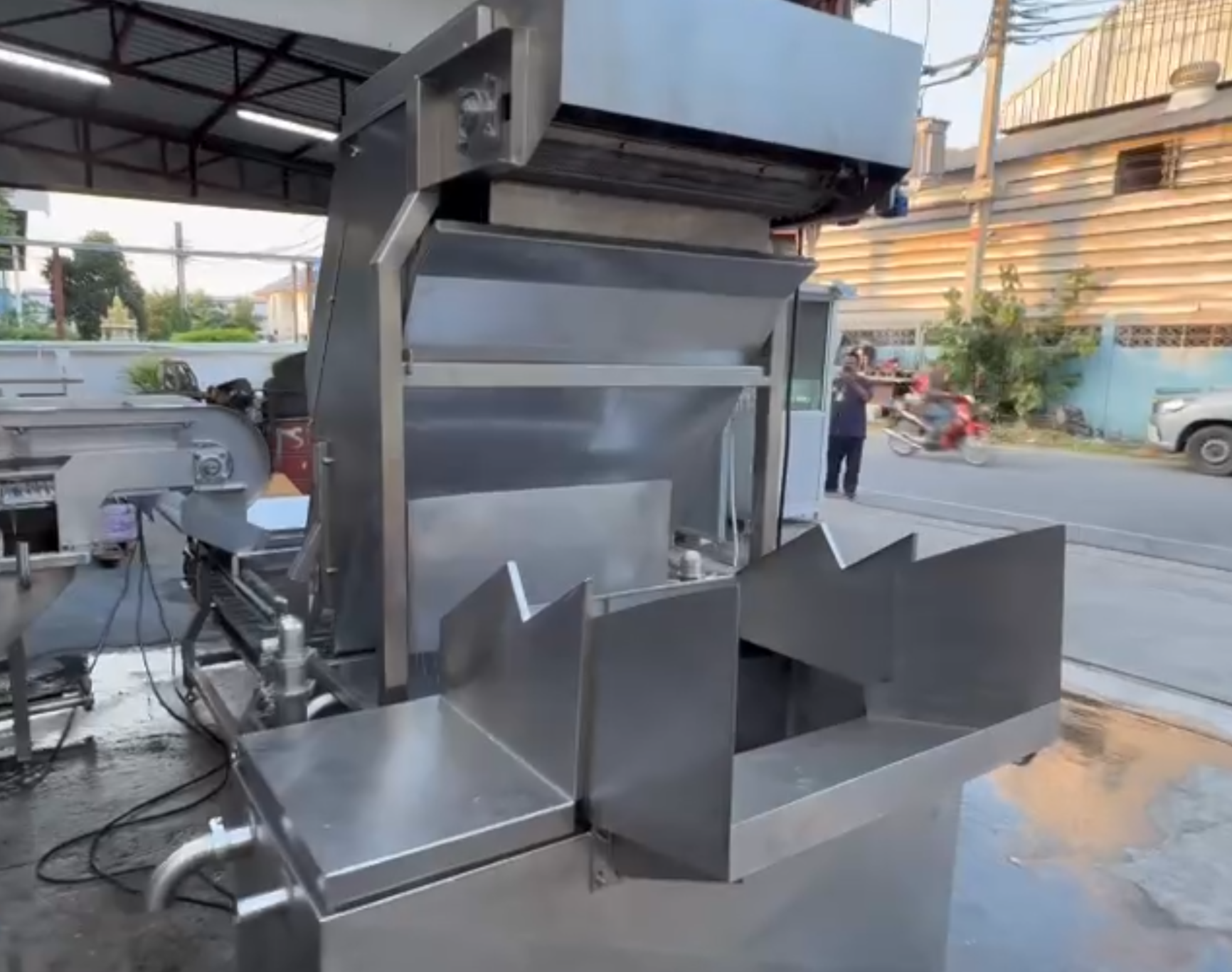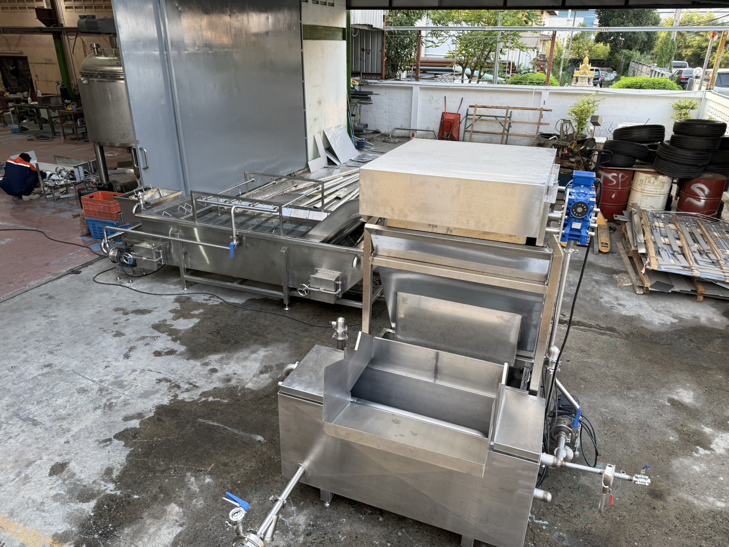 บริษัทฯ ได้ดำเนินการออกแบบ ผลิต และติดตั้งเครื่องแช่คลอรีนร่วมกับสายพานลำเลียงผลิตภัณฑ์แบบลาดเอียง พร้อมระบบล้างคลอรีน เพื่อช่วยลดการปนเปื้อนและเพิ่มความปลอดภัยด้านสุขอนามัยของผลิตภัณฑ์ก่อนเข้าสู่กระบวนการผลิตขั้นถัดไป โดยได้ทดสอบการทำงานเรียบร้อยก่อนส่งมอบ