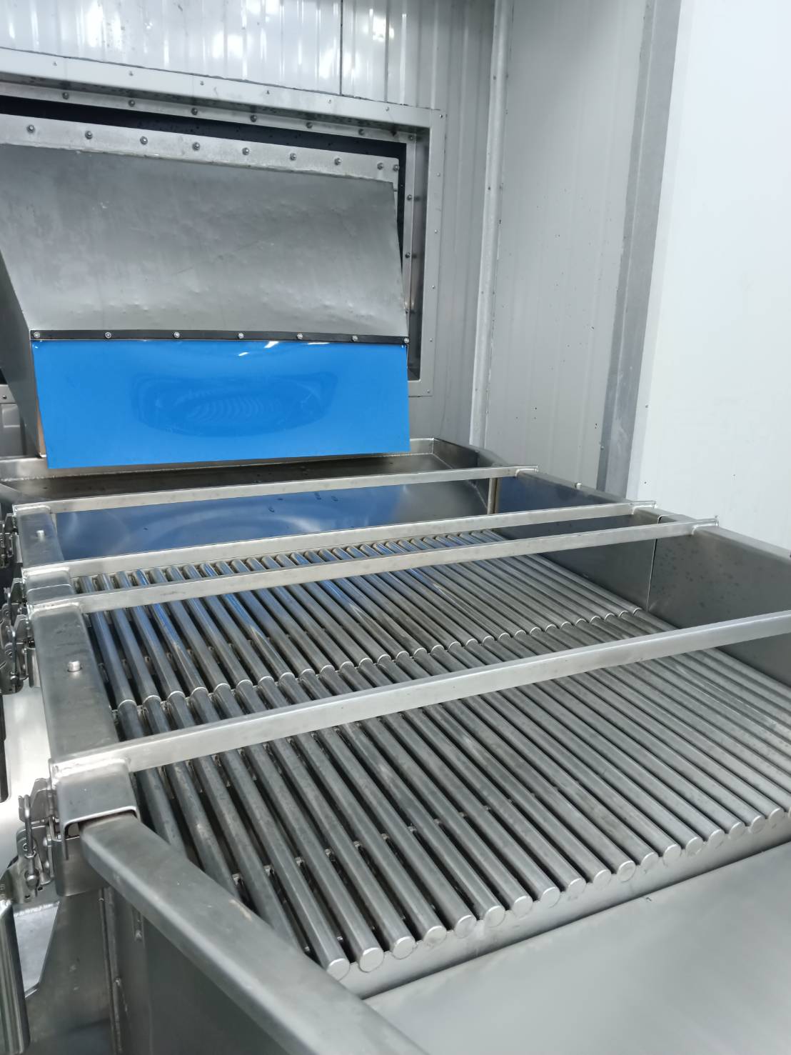 Air Cooling and De-Oiling Conveyor System คือ ระบบสายพานลำเลียงที่ใช้สำหรับทำความเย็นและกำจัดน้ำมันส่วนเกินของอาหาร ใช้ในอุตสาหกรรมอาหารหลังการทอดหรือปรุงสุก โดยระบบจะใช้ กระแสลมแรงสูง หรือระบบดูดน้ำมันเพื่อ: ลดอุณหภูมิของอาหาร ให้เย็นลงอย่างรวดเร็ว กำจัดน้ำมันส่วนเกิน บนพื้นผิวอาหาร ระบบนี้ช่วยให้ ผลิตภัณฑ์คุณภาพสูงขึ้น ลดน้ำมันส่วนเกิน เพิ่มความปลอดภัยและสุขอนามัย เหมาะสำหรับอาหารทอดสำเร็จรูป ขนมขบเคี้ยว หรืออาหารแช่แข็งก่อนบรรจุ