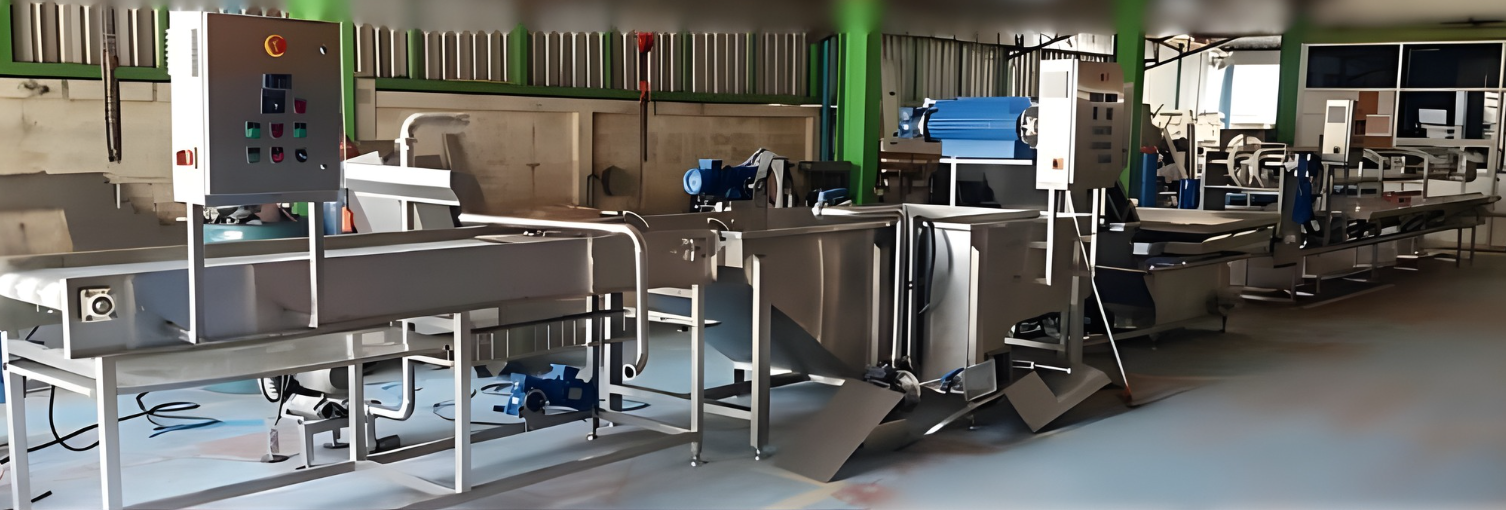 เป็นระบบสำหรับการทำความสะอาดและฆ่าเชื้อผลิตภัณฑ์ก่อนเข้าสู่กระบวนการถัดไป โดยใช้การแช่และล้างด้วยน้ำผสมคลอรีน ช่วยลดการปนเปื้อนของเชื้อโรค เพิ่มความปลอดภัยด้านสุขอนามัย เหมาะสำหรับอุตสาหกรรมอาหารและการแปรรูปผลผลิตทางการเกษตร